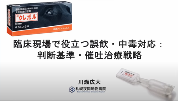 本セミナーは新しく犬の催吐薬(=吐かせる薬)として発売されたクレボル(薬剤名:ロピニロール)の販促も兼ねたセミナーでした。